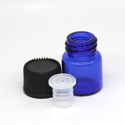 Yizhao Essential Oil 1ml Blue Sample Glass Bottle, Samll Sample Glass Vials Empty for Essential oil Diffuser,Massage,Beauty Oil Mix,Lab bottle with [Orifice Reducers]- 24 Pcs...
