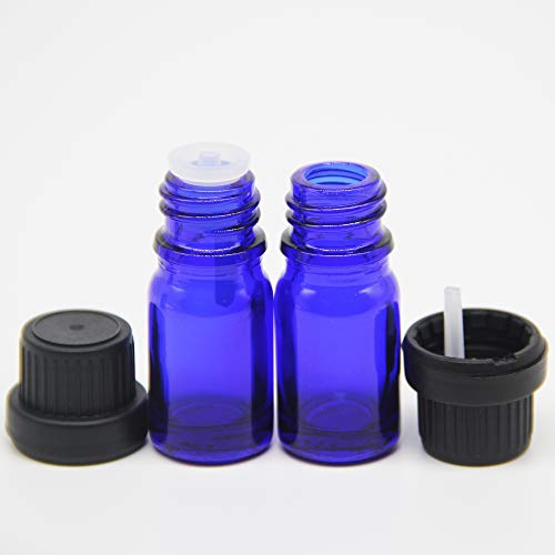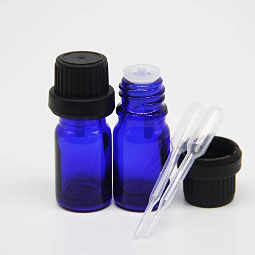 [Pacchetto contiene] bottiglia di vetro blu 12 samll con tappo in plastica + 12 riduttori orifizio mini plastica + 2 più plastict pipette contagocce