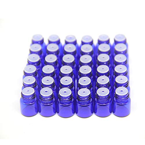 YIZHAO Essential Oil 1ml Blue Sample Glass Bottle, Samll Sample Glass Vials Empty for Essential oil Diffuser,Massage,Beauty Oil Mix,Lab bottle with [Orifice Reducers]- 36 Pcs...