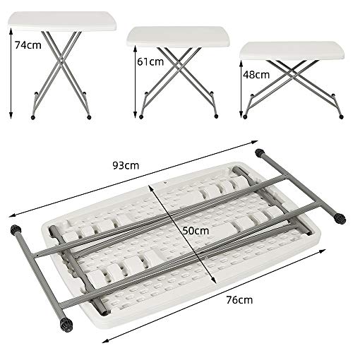 YIZHE Tavolino Pieghevole Regolabile in Altezza, Tavolo da Giardino da Balcone per Esterni- Bianco