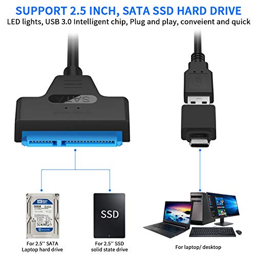 Yizhet Adattatore USB 3.0 a SATA para HDD SSD 2,5", 22 Pin SATA Cavo Adattatore a USB C per Hard Drive 2,5 Pollici, Convertitore Cavo SATA a USB 3.0 + Type C Supporto UASP, Windows, Linux, Vista ecc.