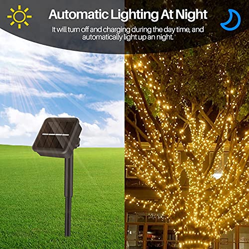 Yizhet Catena Luminosa Solari Esterno, 2 Pezzi 10m Lucine Solari Esterno 200 LED Luci Stringa Solari Esterno con 8 Modalità Impermeabile IP65 per Giardino Patio Balcone Cortile Natale (Bianco Caldo)