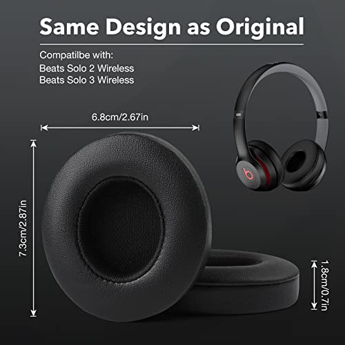 Yizhet Cuscinetti Cuffie Compatibile con Beats by Dr. Dre Solo 2 Solo 3 Padiglioni Cuffie di Ricambio in Pelle Proteica e Spugna (1 Paio, Nero)