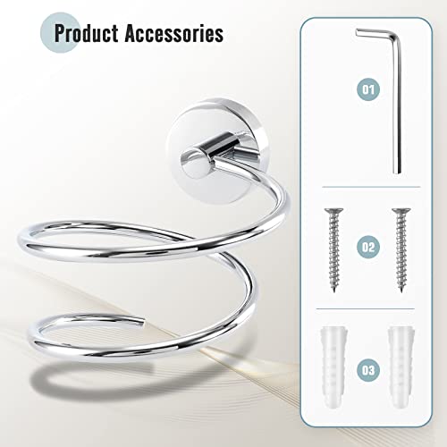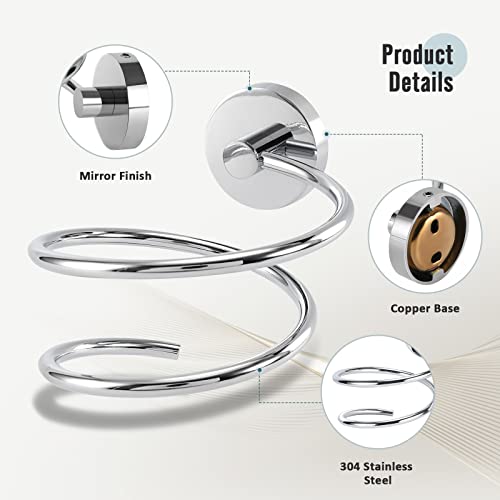 Mensola di asciugacapelli acciaio inossidabile design a spirale, Avere un posto dove appendere il phon fuori dalla via d'acqua e all'interno della portata del braccio con questo elegante supporto
