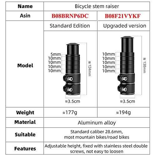 Rialzo Manubrio Bici: Il stelo di risalita adatto per la maggior parte delle bici con sterzo senza filettatura 1-1 / 8 '' (28,6 mm), lungo 138mm, offre altezza dello stelo fino a 100 mm, puoi personalizzare l'altezza dello stelo per le tue esigenze di guida.