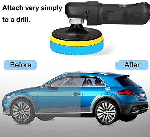 Alta qualitá: Il rilievo di spugna ha porosità fine, elastica ed abilità di assorbimento dell'acqua, potete aggiungere liquido lucidante (pasta, polvere) per ottenere un effetto di lucidatura migliore. Con questi dischi per lucidatrice ultra soffici puoi far risplendere la tua auto al massimo livello di lucentezza, come in un salone.