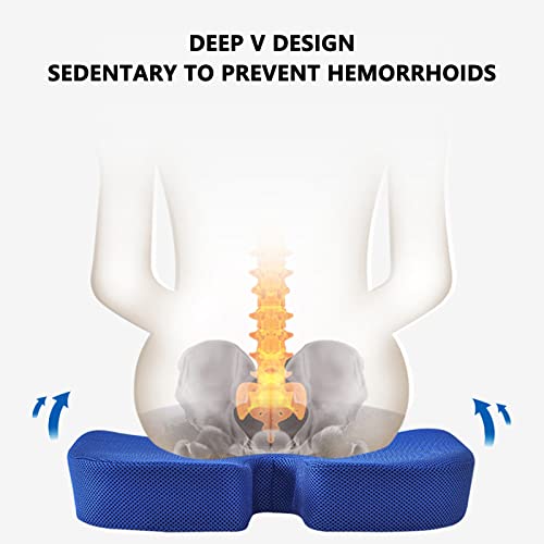 Yizunnu Cuscino per sedile in gel di memory foam, antiscivolo, per sedia da scrivania, per sciatica, coccige e sollievo dal dolore alla schiena, colore: blu reale