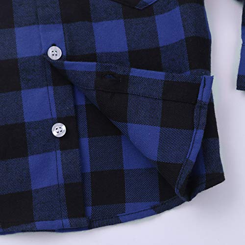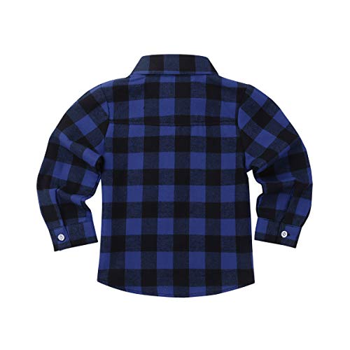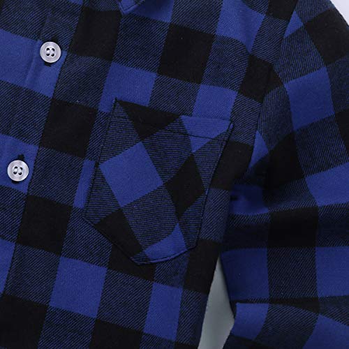YiZYiF Camicia Quadri a Maniche Lunghe per Bimbo Bambini Cotone T-Shirt Maglietta Slim Fit Primavera Autunno Camicia Scozzese Uniforme Scolastica Britannico Casual Gentiluomo Blu Scuro 18-24 Mesi