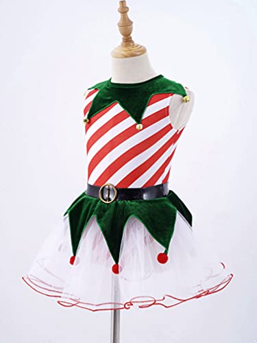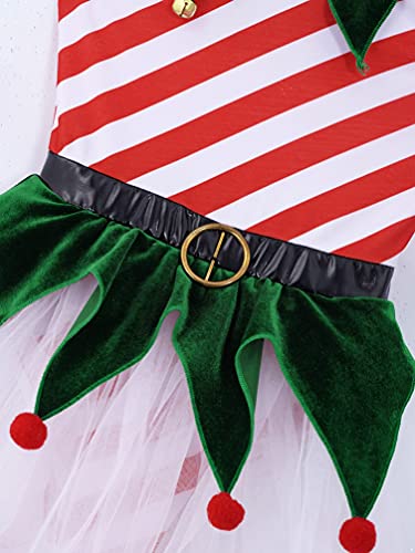 YiZYiF Costume da Elfo Natalizio per Bambina Senza Maniche con Pompon Perfetto per Natale Carnevale Cosplay Carino Partito del Vestito Jumpsuit Outfit Christmas Dress Rosso 14 anni
