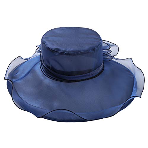 YiZYiF Donna Cappello da Sole Estate con Fiore Cappelli della Chiesa Tesa Cappelli da Sposa Organza Gorras per Lady Ascot Cappello Larga con Grande Fiore Cappello da Cerimonia Blu Scuro Taglia Unica