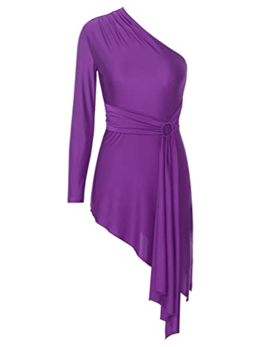 YiZYiF Donna Vestito da Balletto Abito da Danza Moderna Pizzo Vestito da Latino Tango Salsa Rumba Samba Monospalla Body Ginnastica Vestito da Ballerina per Saggio Dancewear Viola E L