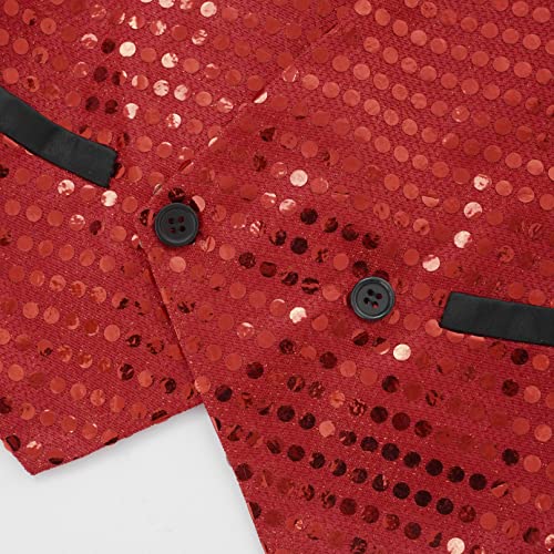 YiZYiF Gilet con Paillettes da Ragazzi Costume Anni '70 da Danza Hip Hop Jazz Vest Top Smanicato da Bambini Abiti da Ballo per Teatro Performance Ballo da Strada Rosso D 16 Anni