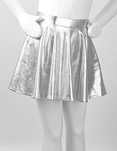 YiZYiF Gonna da Danza Moderna Pattinaggio Artistico Bambina Vita Elastica Gonna da Balletto Danze del Ventre Vita Elastica Vestito da Latino Jazz Performance Dancewear Argento 13-14 Anni