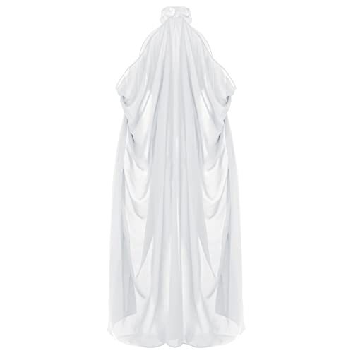 YiZYiF Mantello Senza Cappuccio Lungo in Chiffon Elegante da Donna Scialle Lungo Poncho Donna Estivo Coprispalle Costume di Halloween Carnevale Capo Masquerade Cosplay Bianco Taglia unica