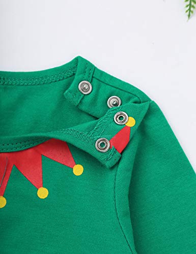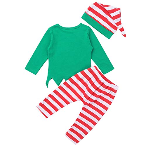 YiZYiF Neonato Natale Completini 3 Pezzi Tutine in Cotone Costume da Elfo Maglietta Manica Lunga/Pantaloni/Cappello Set Piagima a Due Pezzi Natale Invernale 0-18 Mesi Verde 0-3 Mesi