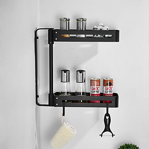YJHome Scaffalatura angolare a doppio strato, girevole in alluminio, scaffale angolare da parete multifunzione (nero)