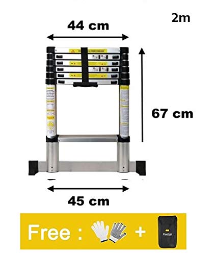 YJIIJY Scala telescopica, Multiuso Allungabile Pieghevole Scaletta Alluminio, Carico Massimo 150 kg (2 M)