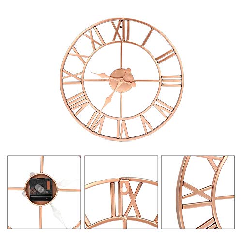 YJSMXYD Orologio da Parete 40Cm Metallo Oro Rosa E Rame Romanio Openwork Silenzioso Home Decor Living Design Semplice