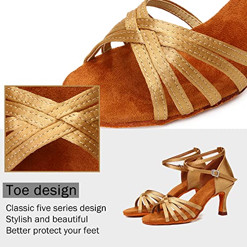 YKXLM Donna & Bambine Scarpe da Ballo Latino Americano Professionali Standard Character Modern Salsa Sala da Ballo Scarpe,ITLP1213-7,Beige,EU 37