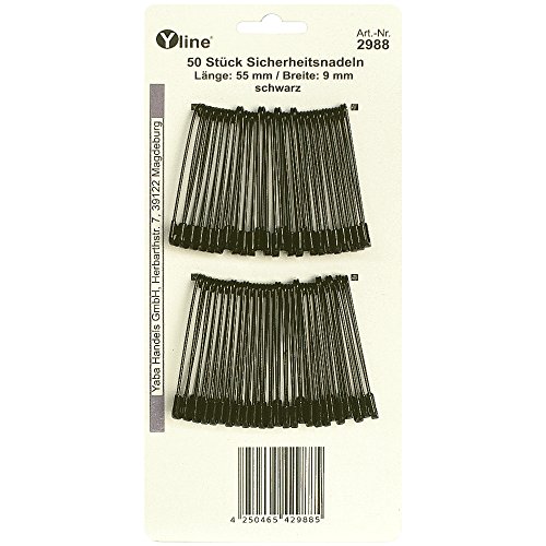 Yline 2988 - 50 spille da balia maxi/grandi, colore: nero, 55 mm
