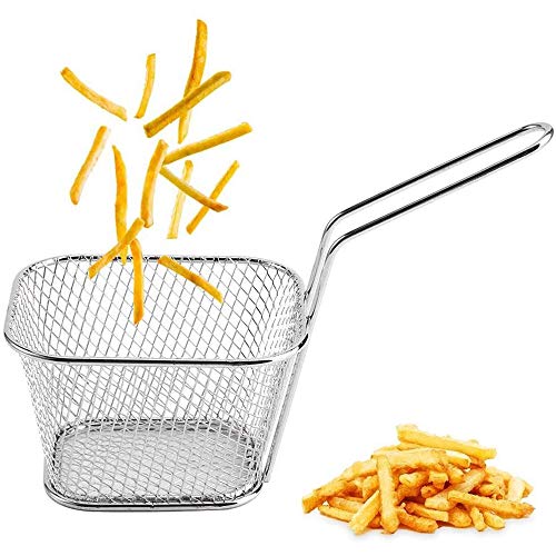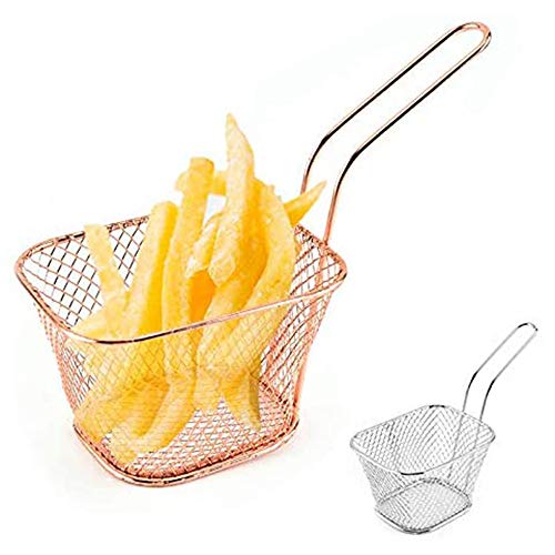 Ylinwtech 2 Pezzi Cestello per Friggere,Mini Cestelli per Friggitrice,Mini Cestino per Patatine Fritte,Acciaio Inox,per Frittura,Patatine,Anelli di Cipolla,Gamberetti,Cucina(Argento,Oro Rosa)