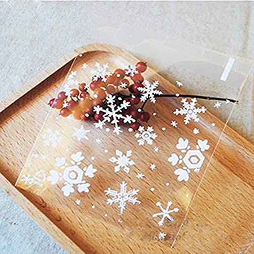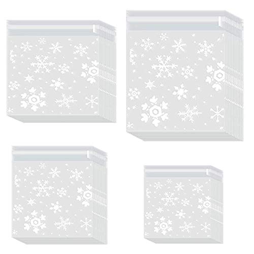 Ylinwtech 400 Pezzi Plastica Biscotti Sacchetto, Snowfake Stampato Imballaggio, Trasparenti, 4 Taglie