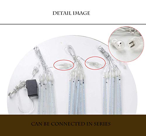 (Dettaglio) - la nostra doccia luci di meteoriti hanno 8tubes su un filo, ogni tubo è 11,8 / 19,6 / 31,4 '' pollice di lunghezza, ogni tubo è indipendente l'uno dall'altro. Filo tra i tubi è 11.8", che è più lungo di altre luci di pioggia sul mercato che è flessibile per voi per organizzare loro un aspetto più ‘naturale' come meteora caduta. Cordthat è abbastanza a lungo per collegare da qualsiasi luogo.