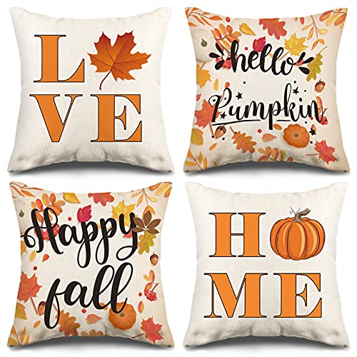 IL COLORE AUTUNNALE: Fantasie di zucca e foglie d'acero, cuscini autunnali. È stampato con parole come "LOVE", "HOME" e "Happy Fall" ed esprime l'attesa per il prossimo autunno e il Ringraziamento. La federa con foglie d'acero autunnale è un ottimo regalo per la famiglia e gli amici.