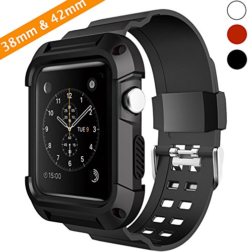 Ymccool Cinturino per Apple Watch con montatura per il display, custodia resistente in poliuretano termoplastico, antiurto, con cinturino nero, per Apple Watch Series 3/Series 2/Series 1 da 38 mm