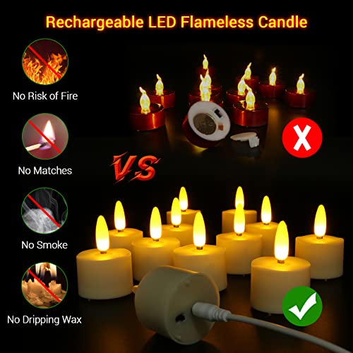 Ymenow Candele a LED ricaricabili con timer a telecomando, 12 pezzi, candele elettriche a LED con funzione timer, cavo di ricarica, fiamma tremolante, per camera da letto, Halloween, Natale, feste