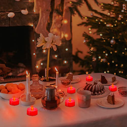 Ymenow - Lumini LED rossi, 12 confezioni tremolanti senza fiamma con timer 6H, candele votive a batteria per decorazione di casa, sala, festival, partito, Halloween, Natale - Rosso