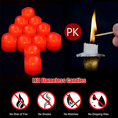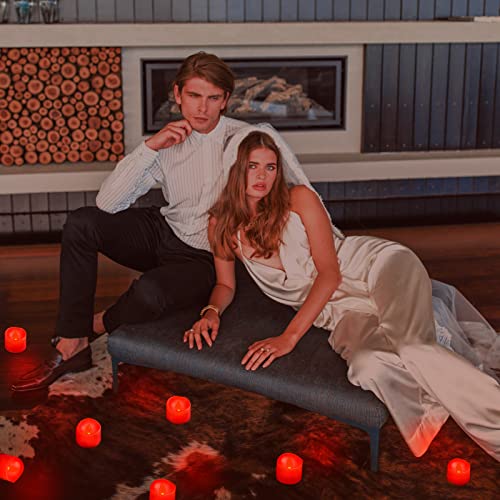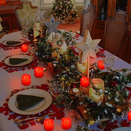 Ymenow Luci da tè rosse a LED, 12 candele a batteria con timer automatico 6 ore tremolante elettrico senza fiamma per decorazioni natalizie per feste di casa - rosso