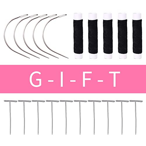 YMHPRIDE Set di clip per parrucca da 70 pezzi, clip a scatto nere in acciaio inossidabile Clip a pettine a 6 e 9 denti per estensioni dei capelli, con filo per tessitura, aghi curvi e spille a T