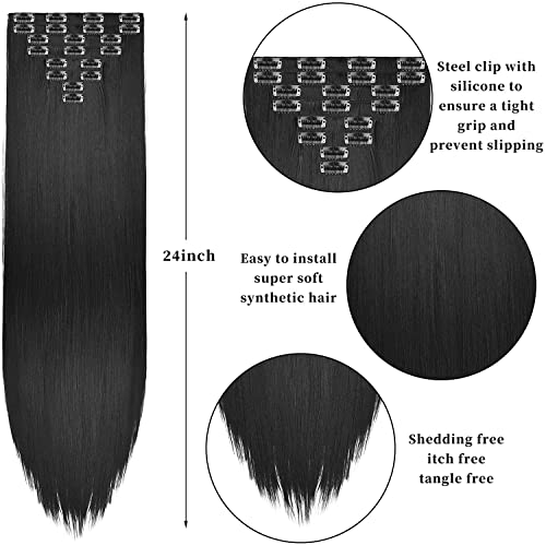 YMHPRIDE Clip a testa piena lunga e dritta nelle estensioni dei capelli 8 pezzi 20 clip per extension per capelli sintetici spessi morbidi per le donne (24 pollici, nero)