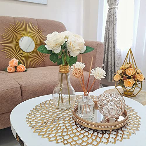 Materiale: queste tovagliette e sottobicchieri dorati sono realizzati in PVC ecologico di alta qualità, antiscivolo, termoisolanti, lavabili, resistenti al colore, non macchiano. Molto resistente e resistente all'usura.