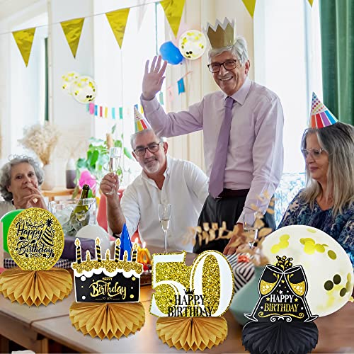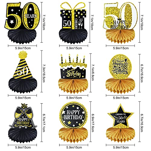 YMIFEEY 14 Pezzi Centrotavola Compleanno per 50° Compleanno Decorazioni Centrotavola a Nido d'Ape Nero e Oro Decorazioni da Tavola per Feste di Compleanno Uomini e Donne