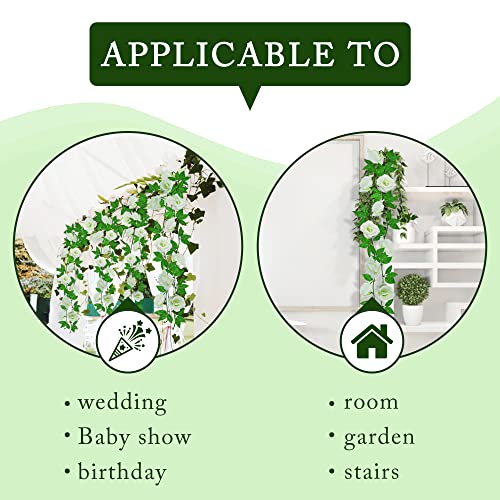 YMIFEEY 4 Pezzi Ghirlanda Fiori Artificiali Rosa 230cm Fiori Finti Ghirlanda Matrimonio Appesi Ghirlande Fiori Piante di Seta Vite per Matrimonio Parete Festa Decorazioni (Bianchi)