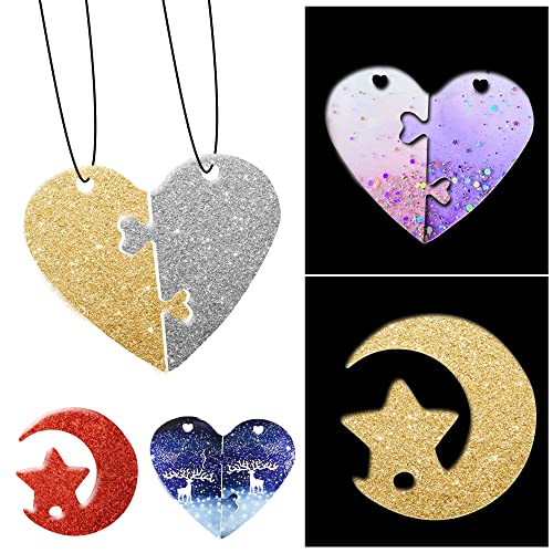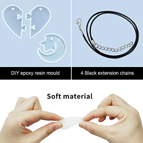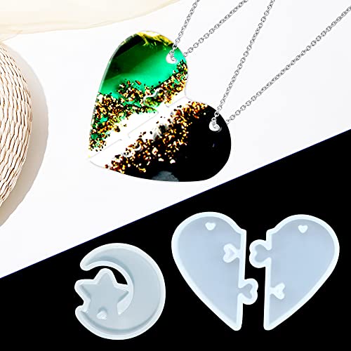 YMIFEEY 2 Pezzi Kit di Stampi in Resina Epossidica Resina Stampo in Silicone con 4 Pezzi Collari Cuore Stella Luna Ciondoli per Gioielli Fai da Te Creazione di Gioielli Artigianato in Resina