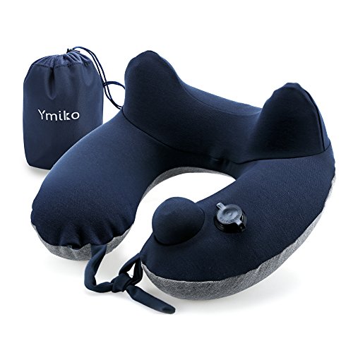 Ymiko Cuscino da Collo,Cuscino da Viaggio con Supporto Mento,U Shaped Cuscino da Viaggio Gonfiabile Supporto-Compatto e Leggero per Dormire in Aereo,Borsa Per il Trasporto Soffice, Cover Estraibile e