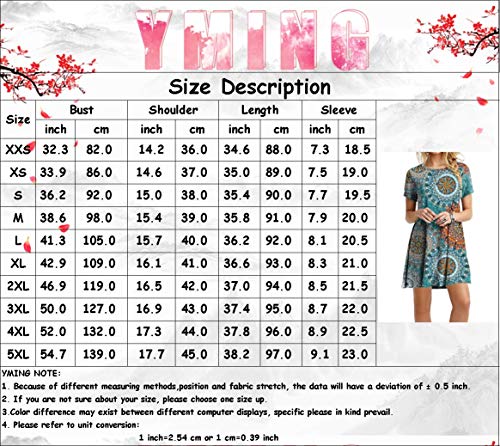 Yming - Mini abito da donna estivo, con stampe, casual, con scollo rotondo, Yh-bordeaux-fiore, XXXL