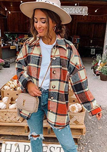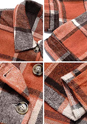 YMING Camicia Casual in Flanella A Quadri A Maniche Lunghe da Donna Camicetta Abbottonata in Cotone per La Vita di Tutti I Giorni Arancione S