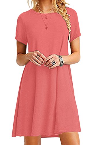 YMING Vestito da donna a maniche corte, stile chemisier o abito a maglietta, taglia da 2XS a 5XL, 24 colori disponibili, rosa - rose corail, XXXXL