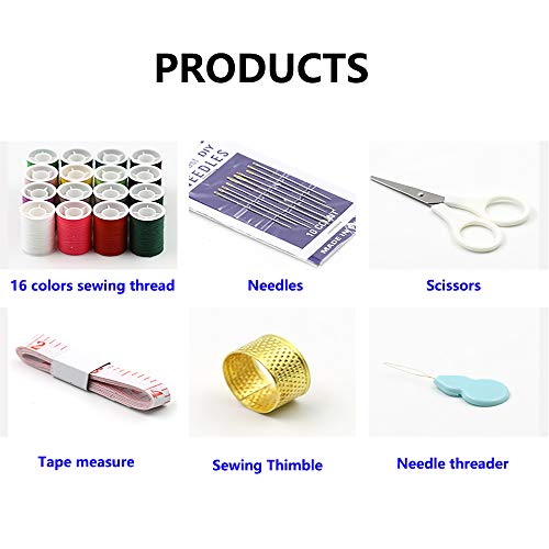 YMWALK Kit da Cucito con Scatola di plastica, Scatola da Cucito Portatile con Accessori da Cucito Kit ago e Filo, Include 16 Colori di Filo, Aghi, Scatola, Forbice, Metro a Nastro, ditale
