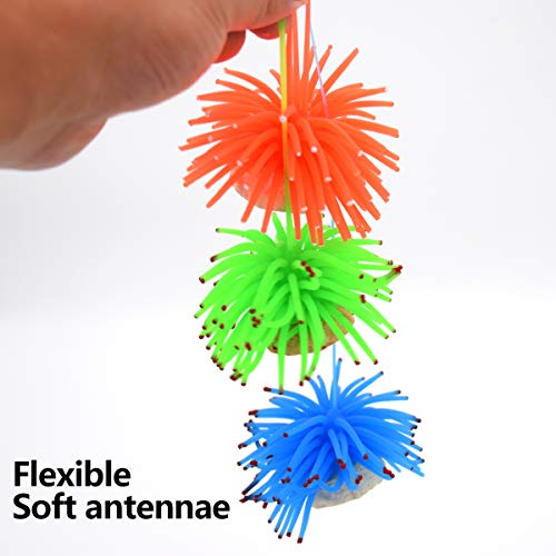 YMWALK Ornamento per Acquario con Acquario, 3 Pezzi di Corallo Morbido Artificiale con Ricci di Mare a Forma di Anemone, Decorazione per Acquario (Verde, Arancione e Blu)