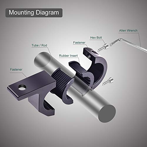 ★ 【Potente capacità di trasporto e anticorrosione】 La staffa di montaggio del morsetto è realizzata in lega di alluminio, forte, eccellente nel trasporto, resistente al calore, antiruggine e protezione dalla corrosione. Non devi preoccuparti a causa delle cadute impreviste del corpo lampada o della ruggine della staffa.