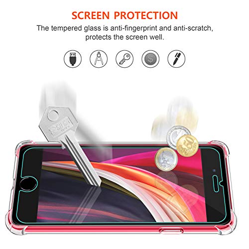 ✔【Protezione Multipla】: Bordo rialzato per proteggere lo schermo del telefono e la fotocamera dai graffi. Il design unico di assorbimento degli urti con 4 angoli assorbe efficacemente gli urti che aiutano a proteggere il telefono da cadute e altri impatti. Combinato con 3 pezzi pellicola vetro temperato, fornisce una protezione completa per il tuo iPhone SE(2020).