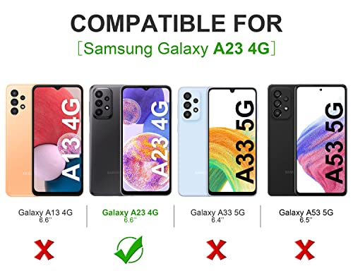 ✔【Protezione Multipla】: Bordo rialzato per proteggere lo schermo del telefono e la fotocamera dai graffi. Il design unico di assorbimento degli urti con 4 angoli assorbe efficacemente gli urti che aiutano a proteggere il telefono da cadute e altri impatti. Combinato con 3 pezzi pellicola vetro temperato, fornisce una protezione completa per il tuo Samsung Galaxy A23 5G (2022).