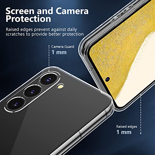YNMEacc Cover per Samsung Galaxy S23, AntiGraffio Samsung Galaxy S23 Cover con 2 Pezzi Vetro Temperato, Sottile Morbida Silicone TPU Antiurto Custodia Samsung Galaxy S23 - Trasparente