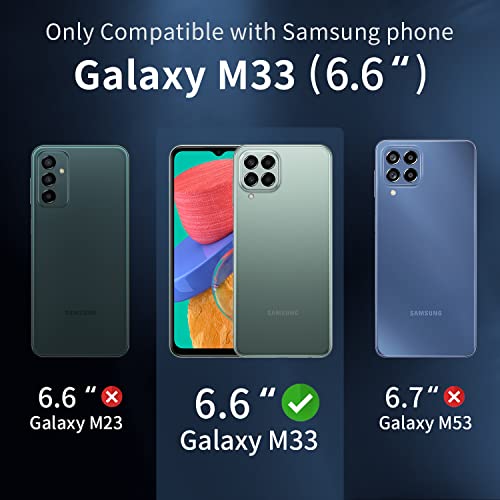 【Perfetta vestibilità】La custodia Samsung Galaxy M33 5G copre l'intero telefono, altoparlanti, obiettivi della fotocamera e altre posizioni di taglio possono essere utilizzati come al solito, Si adatta perfettamente al telaio del telefono e non si allungherà nel tempo. Facile da indossare e rimuovere.
