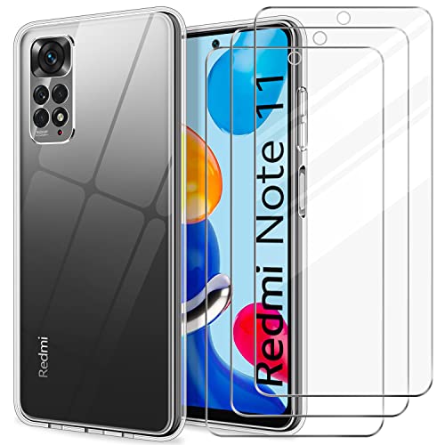YNMEacc New Upgrade Cover Xiaomi Redmi Note 11 4G / Xiaomi Redmi Note 11S 4G, Custodia Redmi Note 11 4G Trasparente con 3 Pezzi Pellicola Vetro Temperato, Flessibile Morbida Silicone TPU Protettiva